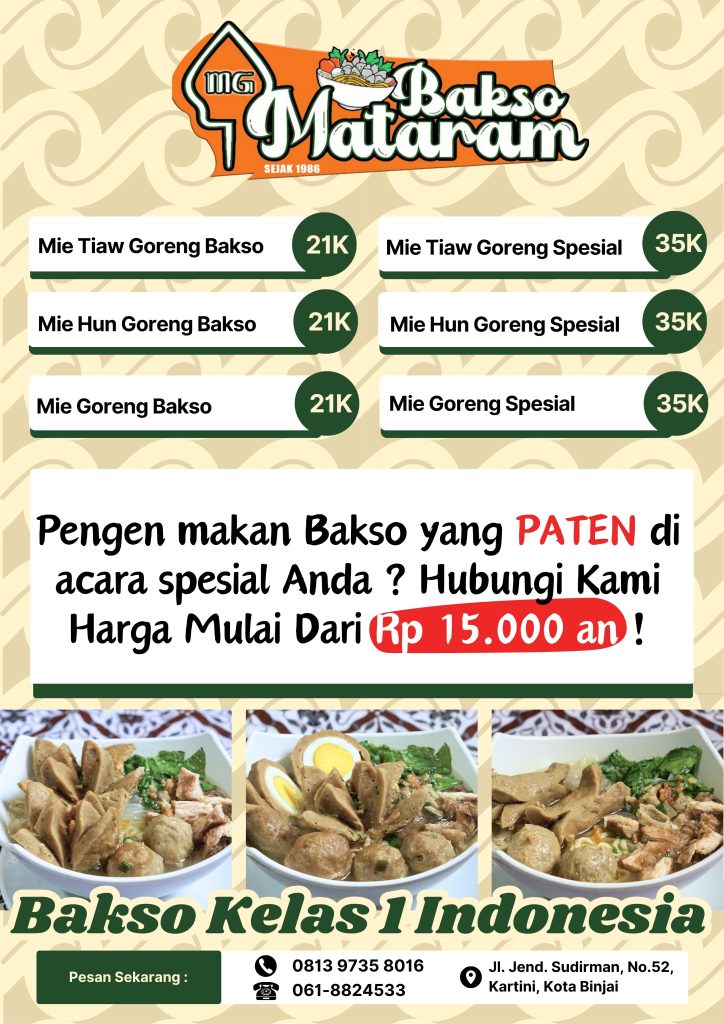 Daftar Menu Bakso Mataram Binjai Divisi IT Mei 22, 2025 Lainnya PrevSebelumnyaDaftar Menu Bakso Mataram Gatsu SelanjutnyaDaftar Menu Lesehan Taman SewurosoNext Mungkin Anda Akan Menyukai Daftar Menu Bakso Mataram Binjai JAMBU METE PALA Tourist Menu RM. Kebun Pondok Punokawan JAMBU BOL KETAPANG Lihat Lebih Banyak Tidak ada berita lainnya Tinggalkan Balasan Batalkan balasanAlamat email Anda tidak akan dipublikasikan. Ruas yang wajib ditandai *KomentarNama * Email * Situs Web Simpan nama, email, dan situs web saya pada peramban ini untuk komentar saya berikutnya. Lihat Ini Berita BeritaPRESIDEN JOKOWI MAKAN DI PUNOKAWAN BINJAI Berita (1) Data Flora & Fauna (48) Karir (1) Lainnya (11) Menu (1) Sosok (1) Karir KarirPRESIDEN JOKOWI MAKAN DI PUNOKAWAN BINJAI Menu Kami MenuMenu Lokal RM. Kebun Pondok Punokawan