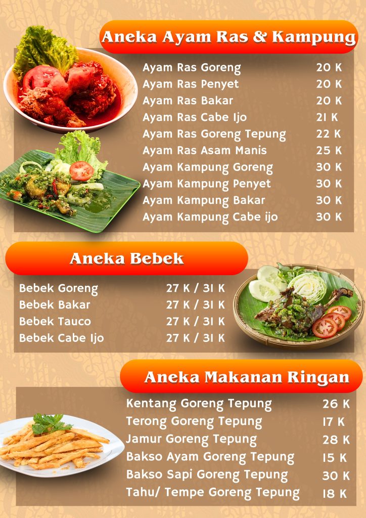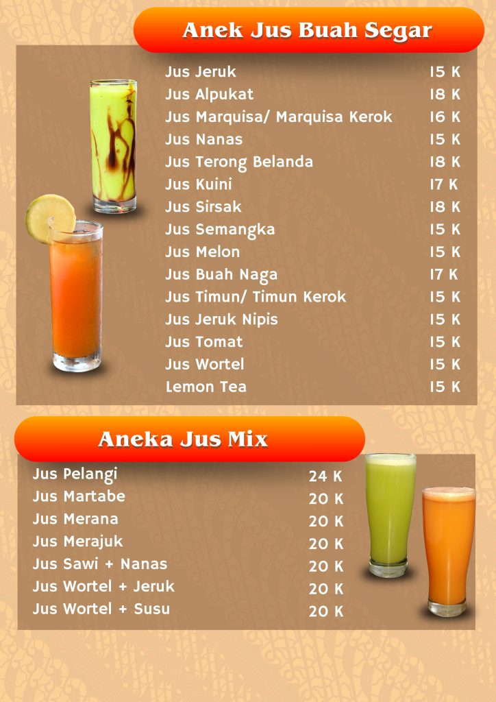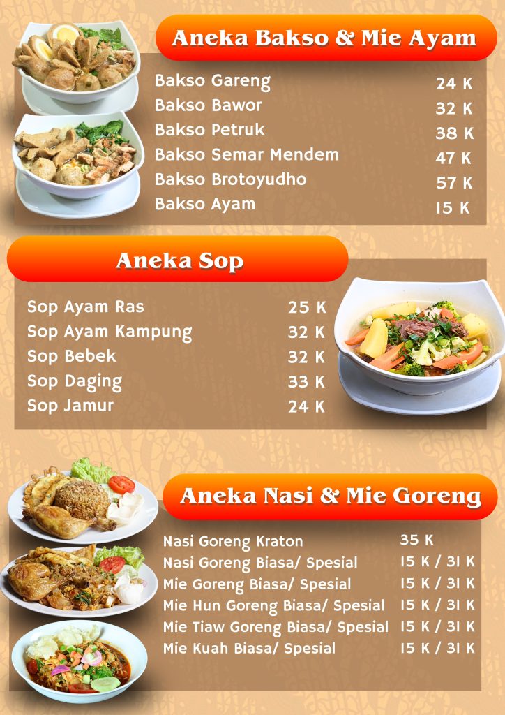 Daftar Menu Lesehan Taman Kraton