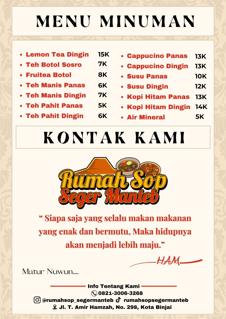 DAFTAR MENU RUMAH SOP SEGER MANTEB